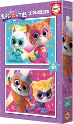 Odkryj magię puzzli z bohaterami serialu Super Kitties. Opakowanie zawiera dwie oddzielne układanki z taką samą liczbą elementów i tym samym formatem końcowym. Dzięki 20 elementom na układankę są idealne dla dzieci, które chcą poprawić koncentrację i motorykę małą.