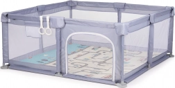 Praktyczny i bezpieczny kojec dla dziecka do codziennej zabawy i odpoczynku. Oferuje przestronną, kwadratową konstrukcję, boczne drzwiczki na zamek dla łatwego wejścia, oddychające panele z siatki oraz wzmocnioną ramę z miękkim wyściełaniem. W zestawie znajdują się 2 pierścienie do podtrzymywania do nauki wstawania. Spełnia normę EN 12227:2010.