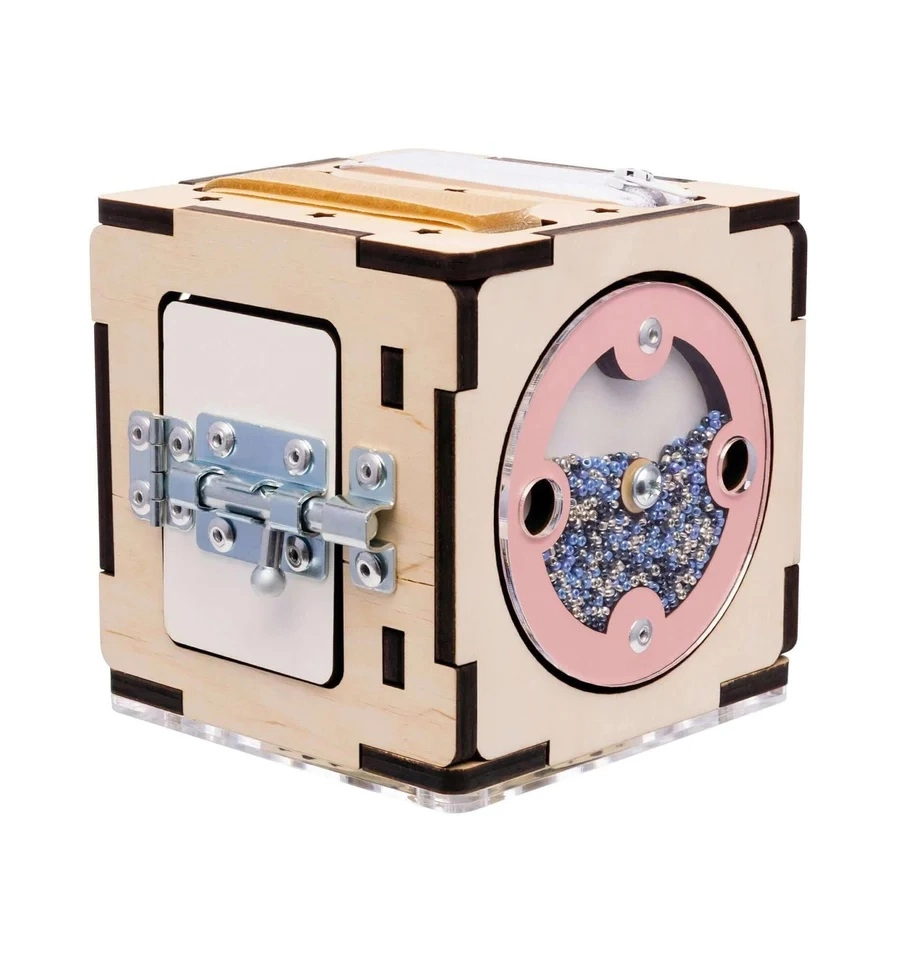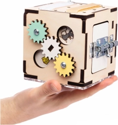 Ta kostka Montessori wykonana jest z wysokiej jakości sklejki brzozowej i wykończona bezpiecznymi farbami na bazie wody. Zaokrąglone krawędzie, solidna konstrukcja i przemyślane elementy mechaniczne wspierają koordynację ręka–oko, cierpliwość i ciekawość. Dzięki kompaktowym wymiarom 11×11×11 cm dziecko z łatwością zabierze ją wszędzie.