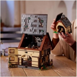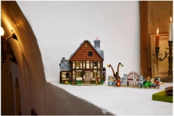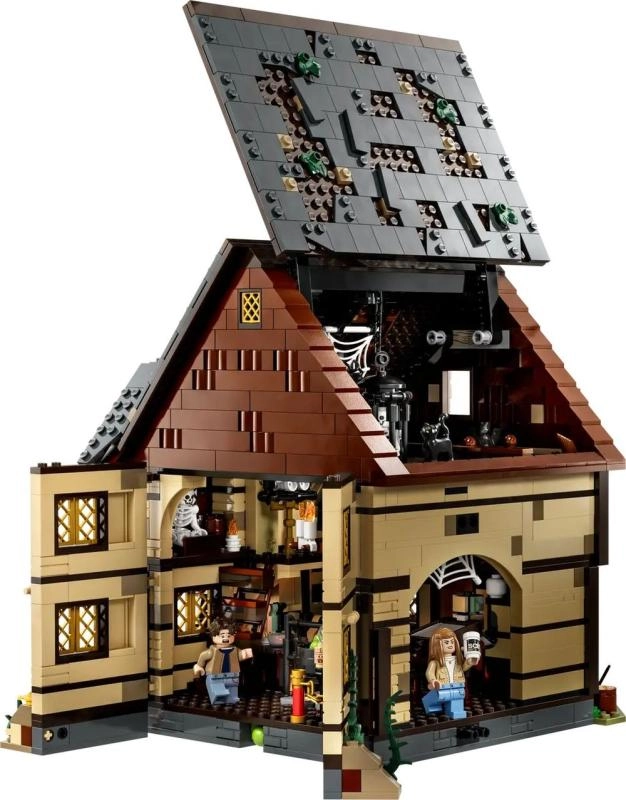 Odkryj kultową chatkę z filmu Disney Hokus pokus w formie niezwykle szczegółowego zestawu dla fanów i kolekcjonerów. Model otwiera się na kilka sposobów, aby ułatwić dostęp do wnętrza: zobaczysz muzealny sklepik, sypialnię czarownic pełną nietoperzy oraz kocioł ze świecącą kostką LEGO, która podświetla ogień od dołu. Nie brakuje Księgi czarów, bocznego pokoju do uwięzienia Dani oraz działającego koła wodnego z kominem, z którego podczas obracania „unosi się” różowy dym.