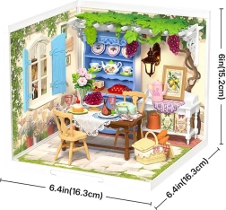 Odkryj urok miniatur z dopracowanym gankiem pełnym mebli, dodatków i roślin. Przezroczyste elementy i oświetlenie LED tworzą wyjątkową atmosferę, dzięki której Twój model wyróżnia się za dnia i w nocy. Montaż jest intuicyjny – precyzyjnie wycięte części gładko się ze sobą łączą bez potrzeby kleju czy specjalnych narzędzi.