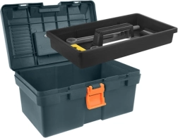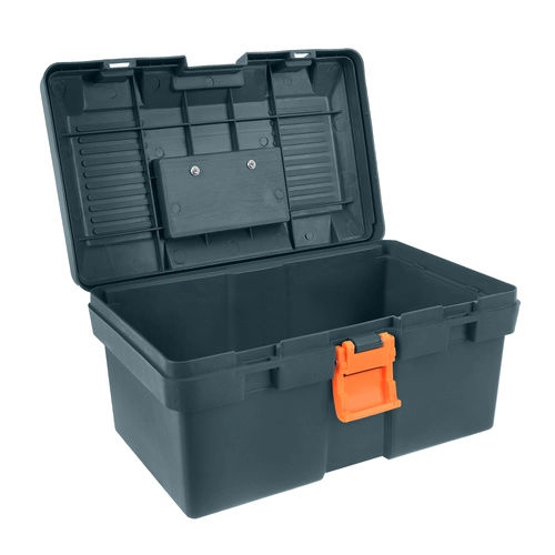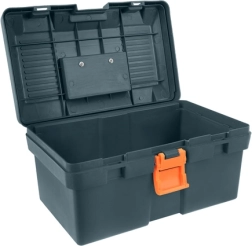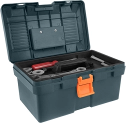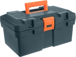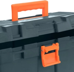 Wytrzymałe plastikowe pudełko z wkładem–organizatorem utrzymuje wszystkie elementy w porządku. Dzięki rączce i pewnemu zamknięciu przenoszenie jest łatwe i bezpieczne.