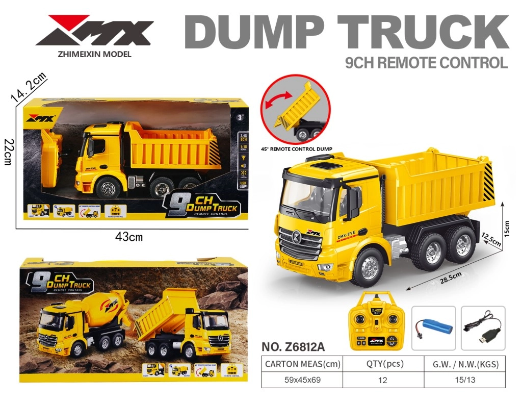 Zdalne sterowanie na częstotliwości 2,4 GHz gwarantuje stabilną transmisję sygnału z zasięgiem do 30 m oraz 9 kanałów dla pełnej kontroli – jazda do przodu/tyłu, skręcanie oraz aktywacja wywrotu. Zintegrowane efekty świetlne i dźwiękowe potęgują wrażenia i czynią model atrakcyjnym zarówno dla początkujących, jak i doświadczonych fanów RC.