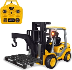 Realistyczny RC wózek widłowy w skali 1:18 z metalowymi elementami oferuje precyzyjne manewrowanie i stabilne sterowanie 2,4 GHz. Posiada ruchomy, solidny widelec z podnoszeniem i opuszczaniem, hak do różnych ładunków oraz realistyczne oświetlenie. Ergonomiczny nadajnik 9‑kanałowy zapewnia wygodne sterowanie wszystkimi funkcjami i zasięg do 30 metrów.