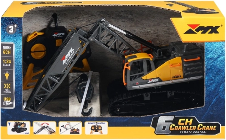 Odkryj dopracowany zdalnie sterowany dźwig z chwytakiem w skali 1:24, wiernie odwzorowujący prawdziwą gąsienicową maszynę budowlaną. Oferuje płynne sterowanie jazdą do przodu/tyłu, skrętem w lewo/prawo oraz szczegółową pracą ramienia – w tym zginanie przegubu i podnoszenie haka. Stylowe żółto‑czarne wykończenie, efekty świetlne i solidne gąsienice podkreślają realistyczny wygląd i funkcje.