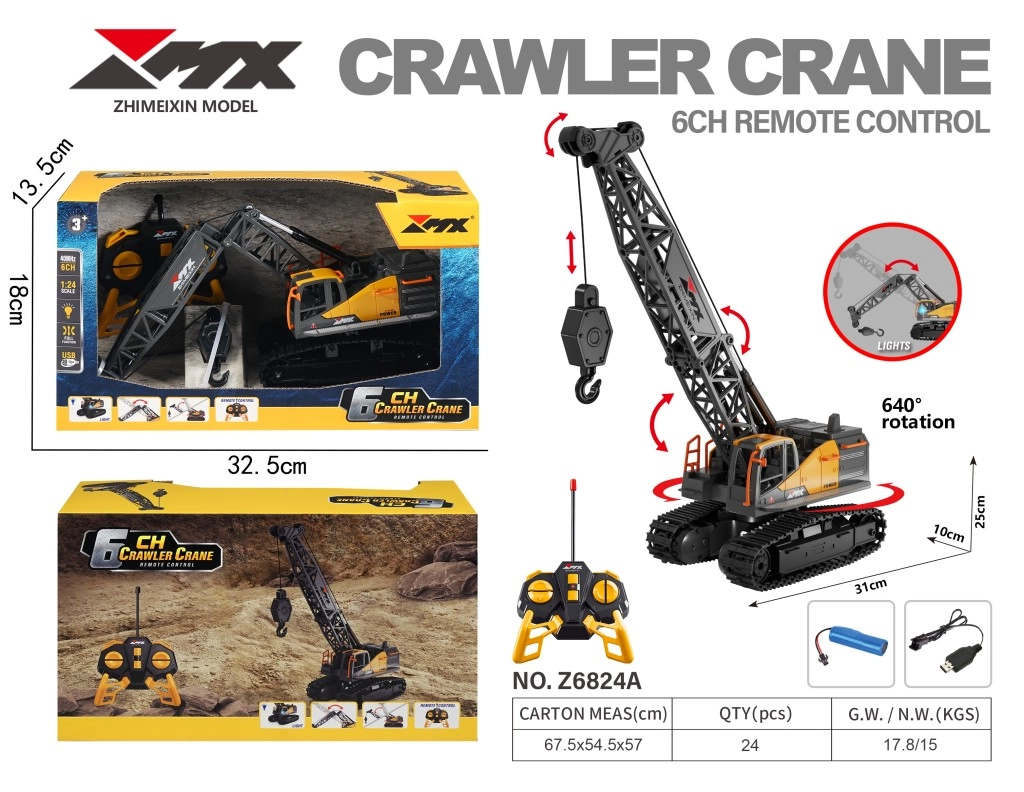 Realistyczny zdalnie sterowany dźwig z chwytakiem w skali 1:24 oferuje sterowanie 6‑kanałowe, gąsienicowe podwozie do jazdy po różnych nawierzchniach oraz precyzyjne manewrowanie ramieniem z możliwością zginania przegubu. Dzięki efektom świetlnym, zasięgowi do 15 m i ładowaniu przez USB jest idealny dla dzieci i kolekcjonerów szukających autentycznej, zdalnie sterowanej maszyny budowlanej.