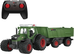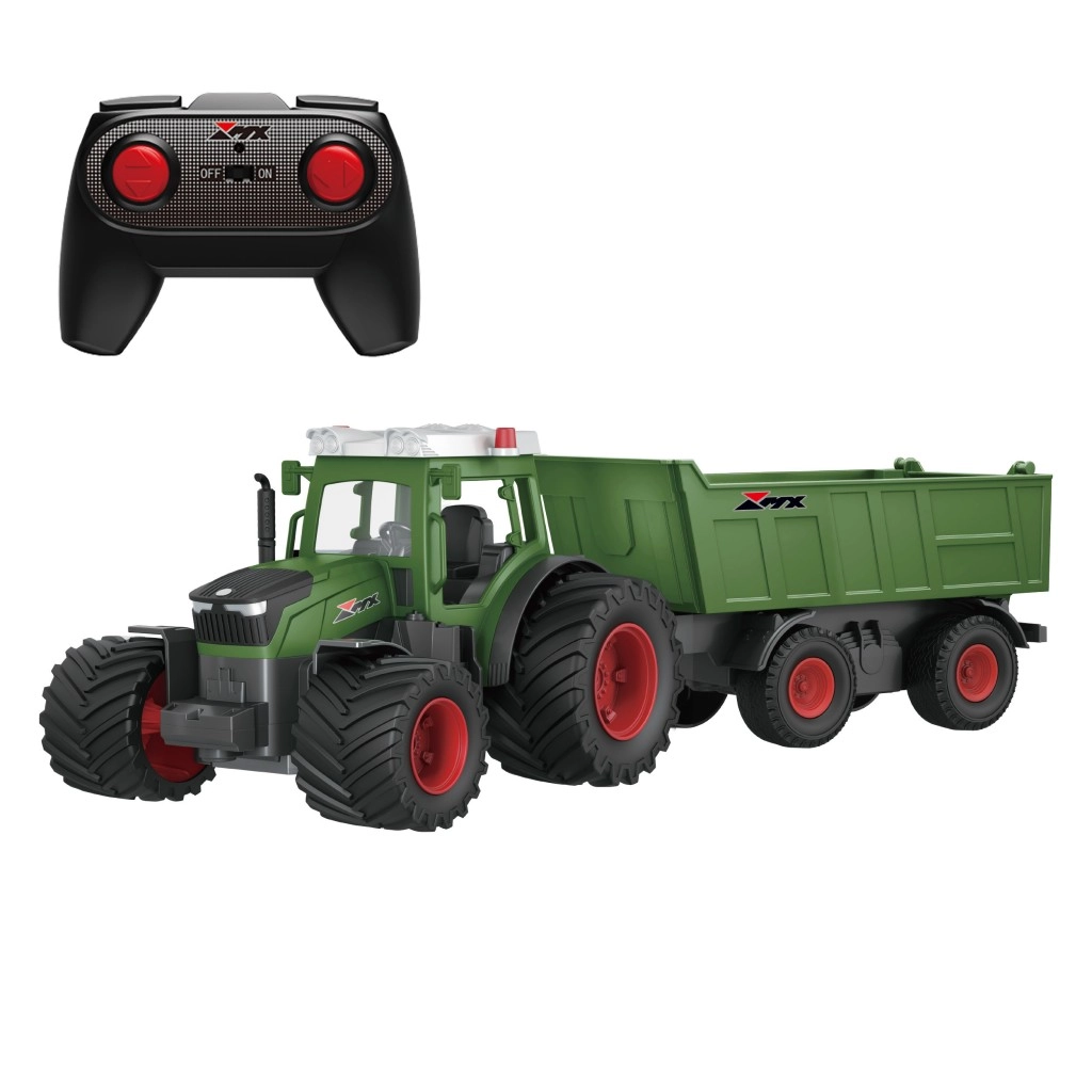 Spraw radość małym farmerom realistycznym modelem, który zachwyca dopracowanymi detalami i niezawodnym sterowaniem. Traktor w zielono‑czerwonej kolorystyce z szczegółową kabiną i kogutem uzupełnia duża przyczepa do symulacji przewozu ładunku. Dzięki technologii 2,4 GHz jazda jest płynna i bez zakłóceń aż do odległości około 30 m.