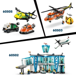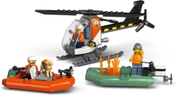 W komplecie jest także mniejsza zielona łódź z elementami płomieni do odgrywania dramatycznych akcji oraz helikopter z otwieranym kokpitem i obracającymi się wirnikami do wsparcia z powietrza. Pięć minifigurek ratowników w pomarańczowych kamizelkach, pies ratowniczy oraz akcesoria, takie jak gaśnica, apteczka, radiostacja i koła ratunkowe, pobudzają kreatywne opowiadanie historii.