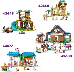 W zestawie są dwie minilaleczki – jedna w stroju jeździeckim i kasku – oraz zwierzęcy przyjaciele, z którymi można trenować przeszkody, bawić się przy jeziorku lub wybrać się na piknik. LEGO Builder prowadzi dzieci krok po kroku, pozwala śledzić postępy i obracać model w 3D, dzięki czemu budowanie jest intuicyjne nawet dla młodszych konstruktorów.