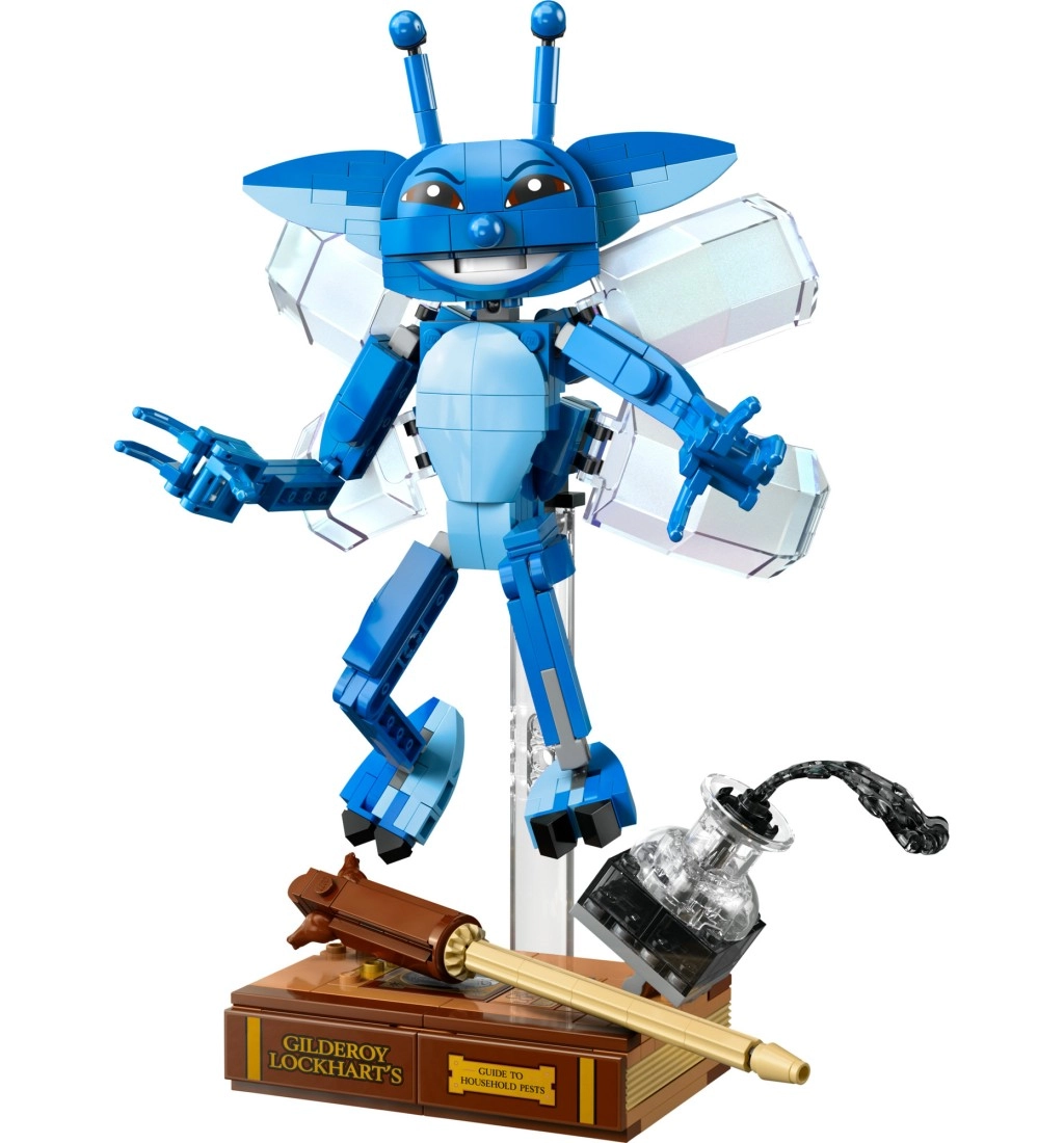 W zestawie znajdują się efektowne akcesoria – książka GILDEROYA LOCKHARTA z dopracowanym grzbietem i złotym napisem, przezroczysty kałamarz z atramentem oraz złota różdżka. Model można wyeksponować na przezroczystej podstawce lub ustawić w pozycji stojącej. Budowę ułatwia aplikacja LEGO Builder z cyfrową instrukcją, przybliżaniem i obracaniem w 3D.
