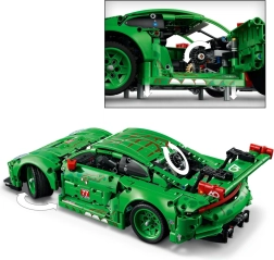 Zbuduj kultowy samochód wyścigowy PORSCHE w zielonej wersji z motywem T-rexa. Ten zestaw LEGO Technic oferuje realistyczne funkcje, takie jak otwierane drzwi i maska, działający sześciocylindrowy bokser z prawidłową kolejnością zapłonu, sterowanie tylną osią z mechanizmem różnicowym obsługiwane pokrętłem na dachu oraz w pełni działające zawieszenie wszystkich kół. Dzięki 1 313 elementom zachwyci zarówno budowniczych od 11 lat, jak i kolekcjonerów.