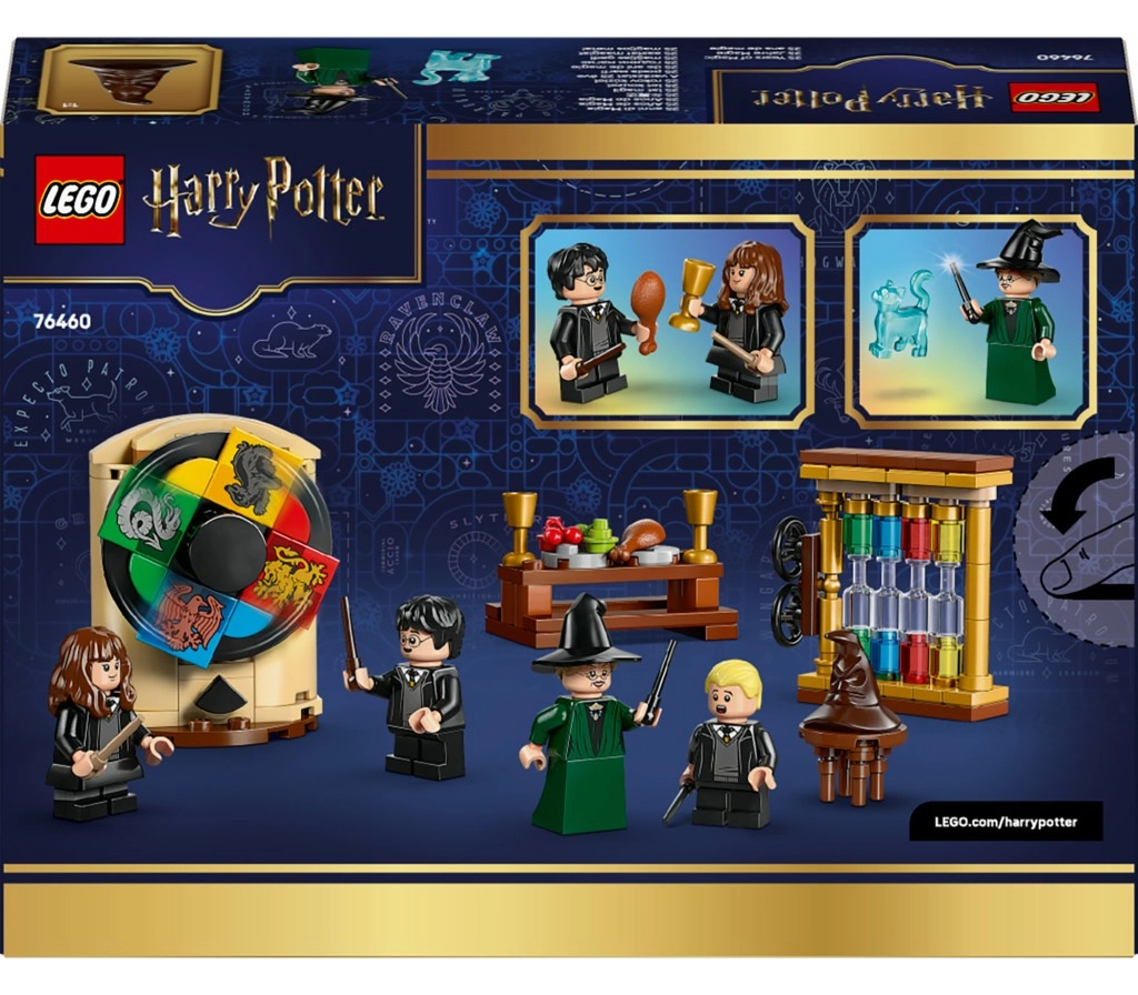 Wejdź w klimat Hogwartu i przeżyj ceremonię przydziału jak w filmie. Obróć mechanizm Tiary Przydziału, nałóż ją minifigurce i zobacz, do którego domu trafi uczeń. Autentyczne detale Wielkiej Sali, w tym stół jadalny z ucztą i liczniki punktów domów, zachęcają do kreatywnej zabawy i opowiadania własnych magicznych historii.