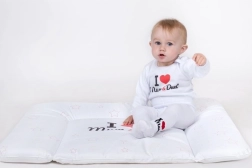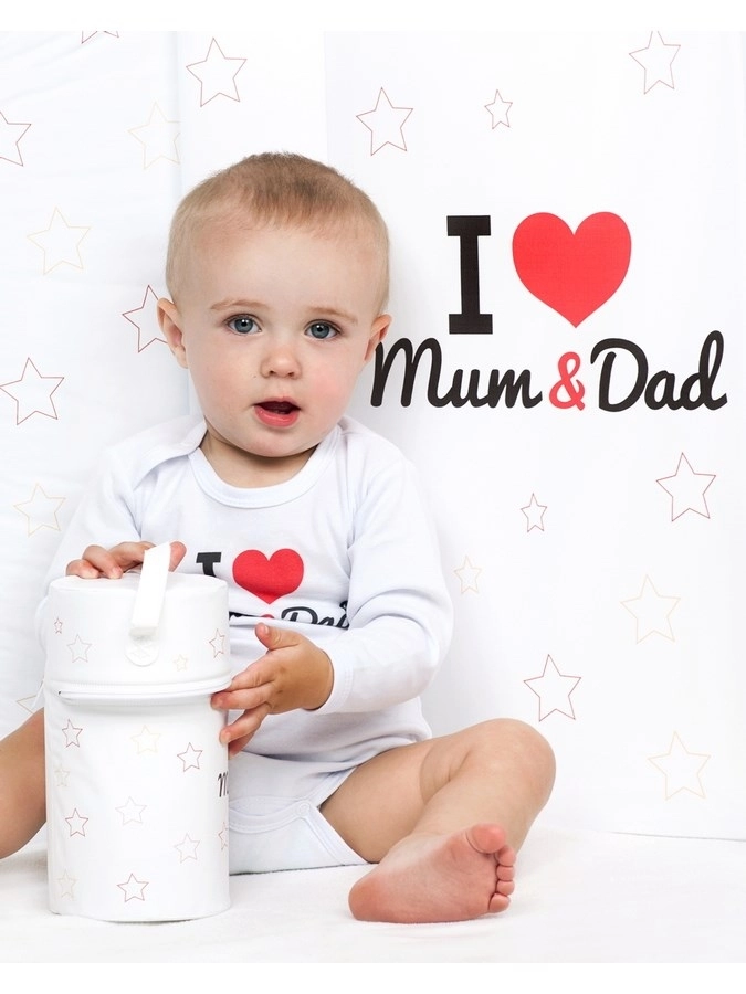 Urocze body niemowlęce z długim rękawem marki New Baby z nadrukiem I Love Mum and Dad. Wykonane w 100% z bawełny delikatnej dla wrażliwej skóry dziecka, z wygodnym zapięciem na napy na ramieniu i między nóżkami. Certyfikowane bezpieczne barwniki gwarantują łagodność dla maluszka.