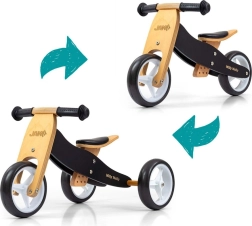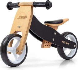 Jeździk 2w1 MILLY MALLY Jake Classic Black rośnie razem z dzieckiem: zaczyna jako pewny trójkołowiec, a w kilka chwil zamienisz go w rowerek biegowy bez pedałów na dwóch kołach. Dzięki lekkiej i wytrzymałej drewnianej konstrukcji, wygodnemu miękkiemu siodełku z regulacją w 3 poziomach oraz antypoślizgowym rączkom oferuje bezpieczną i pełną zabawy jazdę.