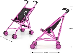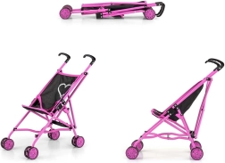 Podwójne plastikowe kółka dla płynnego prowadzenia oraz zabezpieczenie przed samoczynnym złożeniem. Pasy utrzymują lalkę pewnie na miejscu.