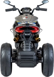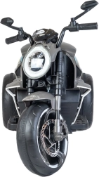 Motocykl zachwyca także bogatym wyposażeniem multimedialnym: wejście USB, Bluetooth i panel muzyczny z funkcjami edukacyjnymi oraz bajkami w języku angielskim wspierają rozwój dziecka i zabawę w trakcie podróży. Prosty one-click start ułatwia uruchamianie nawet młodszym dzieciom.