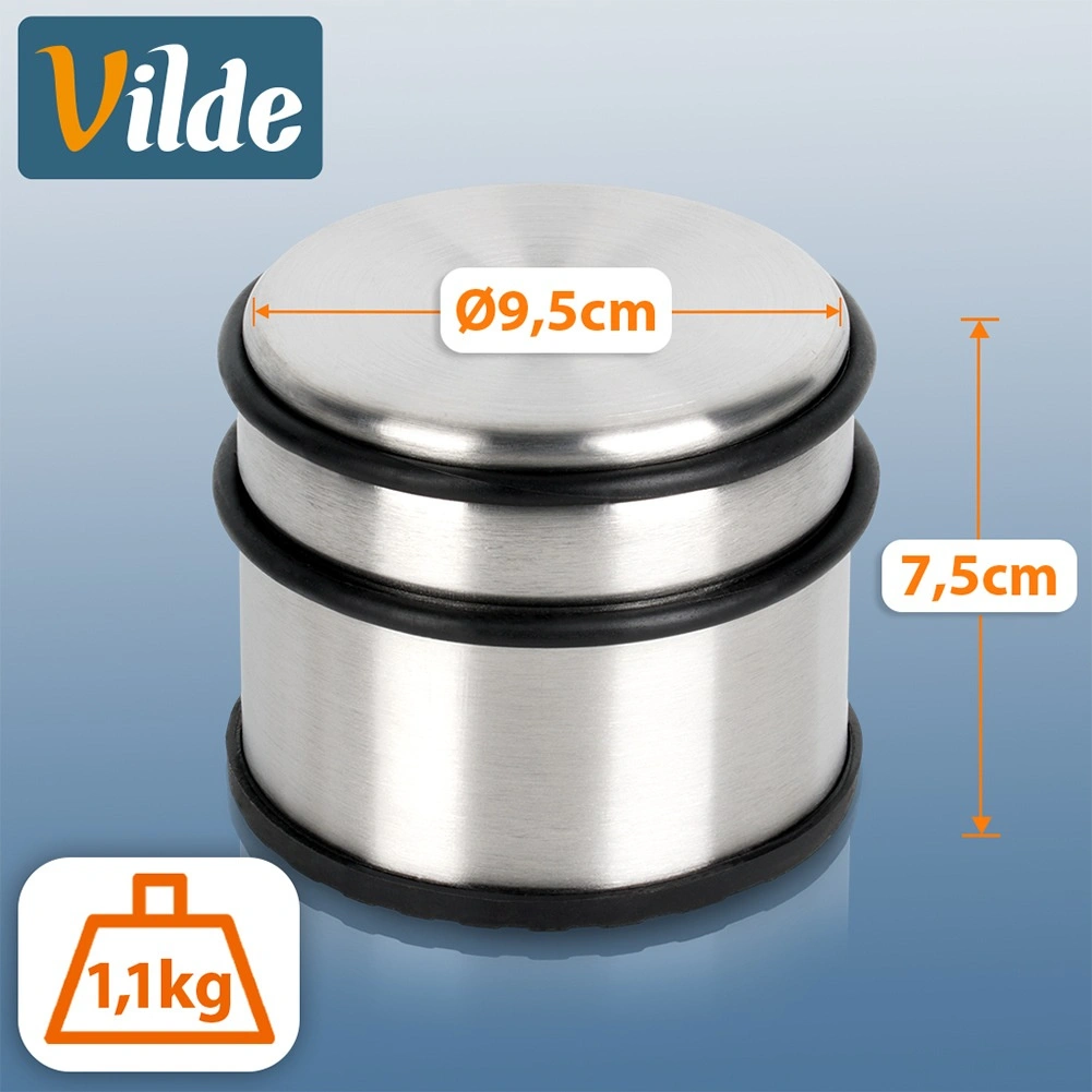 Elegancki i ciężki stoper do drzwi ze stali nierdzewnej w srebrnym kolorze jest idealny do mieszkania, domu i biura. Wysoka masa 1,1 kg zapewnia stabilność, dzięki czemu drzwi pozostają tam, gdzie ich potrzebujesz. Gumowe pierścienie wokół obwodu chronią drzwi przed uderzeniami, a gumowa podstawa zapobiega ślizganiu i chroni podłogę.