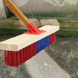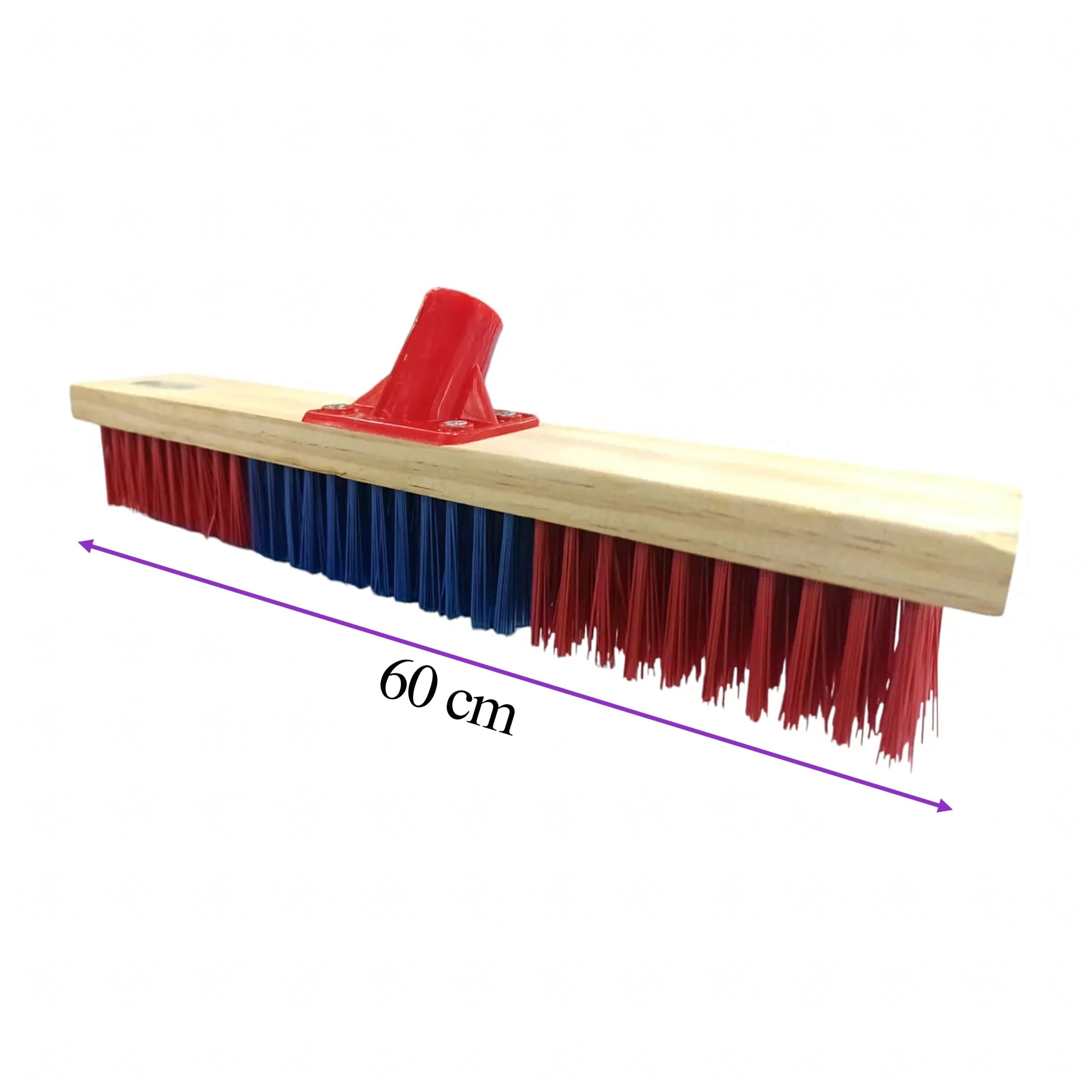 Solidny zamiatacz o szerokości 60 cm zaprojektowany do intensywnego sprzątania dużych powierzchni. Gęste i twarde syntetyczne włosie (PVC) skutecznie zbiera liście, kurz i grubsze zanieczyszczenia oraz dobrze działa na mokrej nawierzchni. Drewniany blok z plastikowym adapterem i gwintem 22 mm utrzymuje trzonek mocno na miejscu i zapewnia długą żywotność.