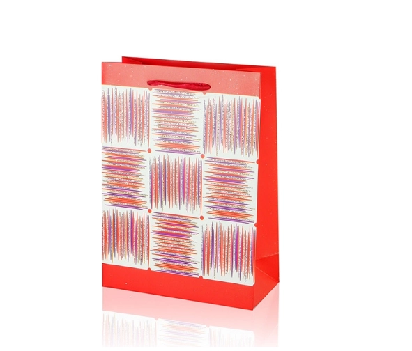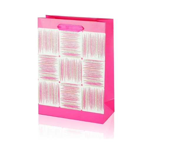 Stylowa torebka prezentowa w rozmiarze A5 do eleganckiego zapakowania mniejszych upominków. Dostępna w czterech kolorach z połyskującym wzorem i solidnymi, wstążkowymi uchwytami dla wygodnego noszenia. Solidne wykonanie, błyszcząca powierzchnia i praktyczne wymiary czynią ją idealnym wyborem na każdą okazję.