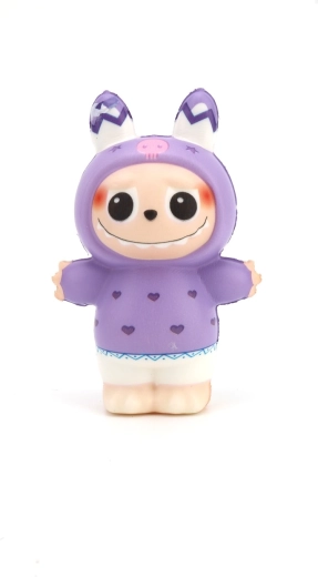 Spraw sobie radość antystresową figurką, która łączy zabawę, design i praktyczność. Ściskana laleczka z okrągłą buzią, dużymi oczami i szerokim uśmiechem jest ubrana w stylizowany kombinezon z kapturem zdobionym uszkami, serduszkami, kokardkami lub gwiazdkami. Przyjemna, aksamitnie miękka powierzchnia spodoba się zarówno dzieciom, jak i dorosłym.