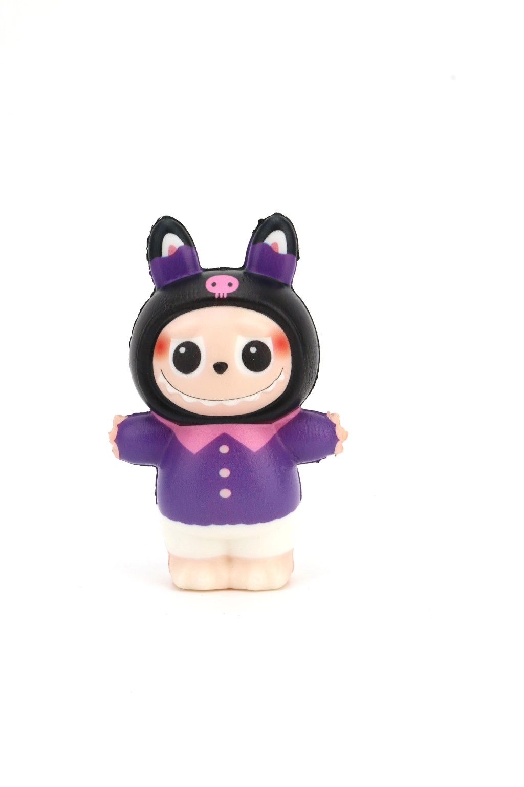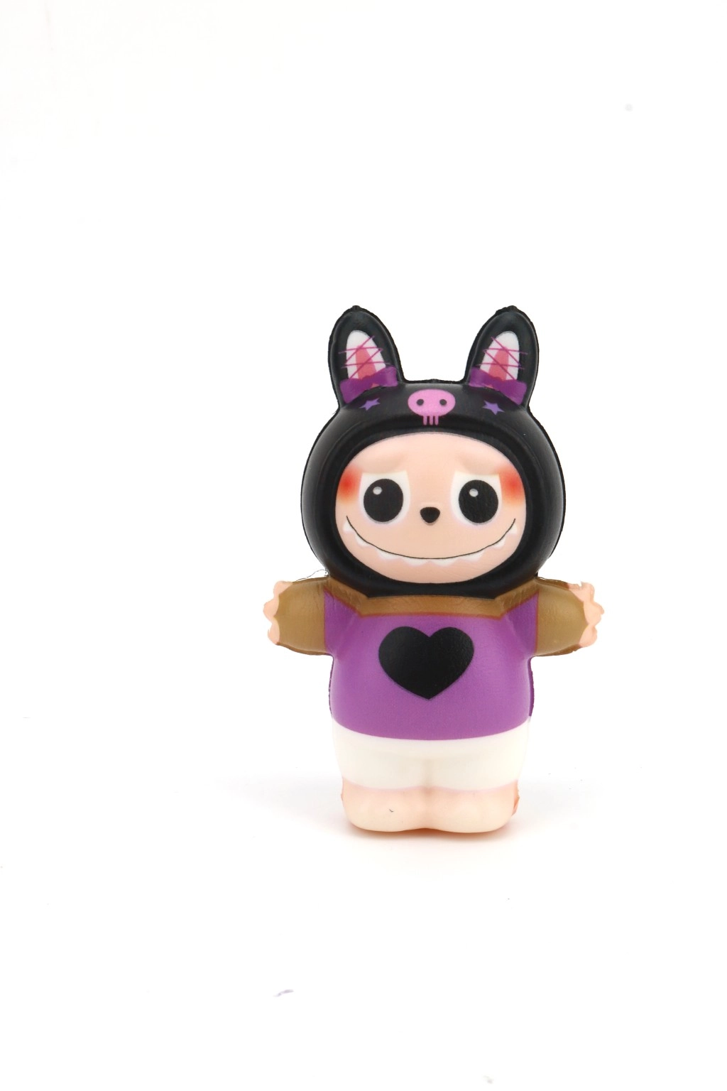 Laleczka dostępna jest w kilku wersjach kolorystycznych (fioletowa, niebieska, jasnoniebieska, czarna) z oryginalnymi detalami, takimi jak serduszka, paseczki czy guziki. Dzięki rozłożonym rączkom dobrze leży w dłoni, nie wyślizguje się i świetnie sprawdza się podczas krótkich przerw na relaks w biurze, w domu i w podróży.