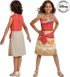 Detalne nadruki, dekoracyjny pas i lamówka spódnicy nadają kostiumowi wierny wygląd bohaterki z DISNEY VAIANA.