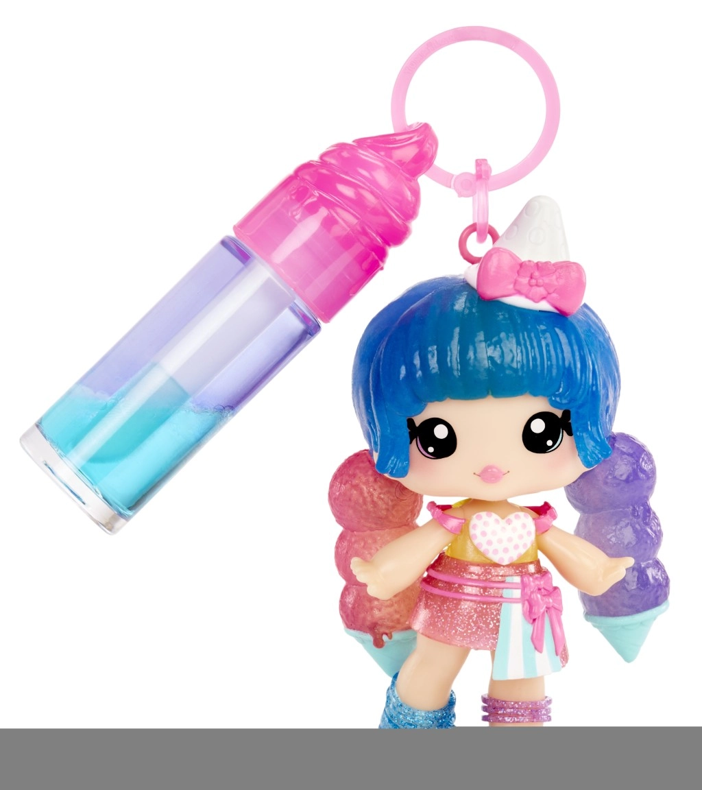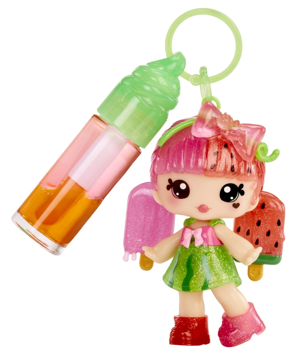 Z zestawem Yummiland dzieci stworzą swój wyjątkowy, pachnący błyszczyk do ust, a jednocześnie będą się bawić magiczną zmianą koloru włosów laleczki w lodowatej wodzie. Każda postać ma zdejmowany strój i buty, a dzięki dołączonemu kółku można ją przypiąć jako brelok do plecaka lub kluczy.