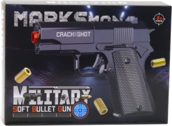Model wykonano z wytrzymałego plastiku, a jego czarne wykończenie prezentuje się stylowo i uniwersalnie. W zestawie znajdziesz 10 plastikowych nabojów i 2 łuski, które można używać wielokrotnie, więc dzieci mogą bawić się naprawdę długo – w domu i w ogrodzie.