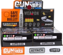 W opakowaniu znajduje się 10 plastikowych nabojów i 2 łuski, które można wielokrotnie używać.