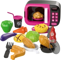 Dzięki panelowi dotykowemu z przyciskami mali kucharze mogą „wybierać program” lub czas podgrzewania. Bogaty zestaw plastikowych produktów i dodatków rozwija małą motorykę, wyobraźnię i umiejętności społeczne podczas wspólnej zabawy.