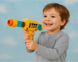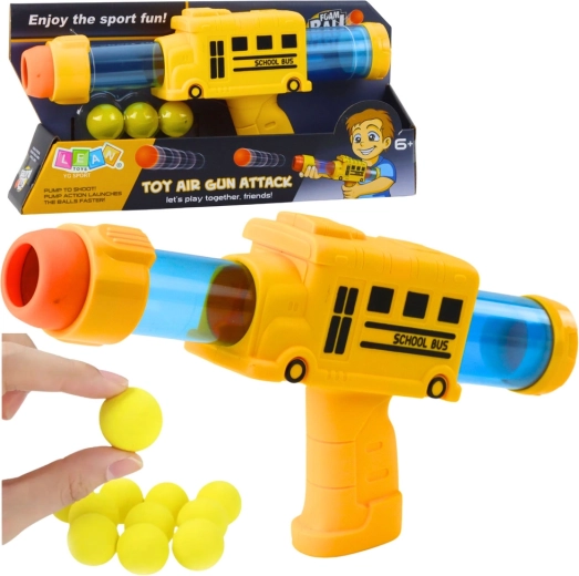 Ten oryginalny pistolet w stylu szkolnego autobusu zachwyca intensywnymi kolorami i atrakcyjnym designem, który motywuje dzieci do ruchu i kreatywnej zabawy. Strzelanie odbywa się za pomocą miękkich piankowych kulek, które są delikatne i odpowiednie także do wnętrz.