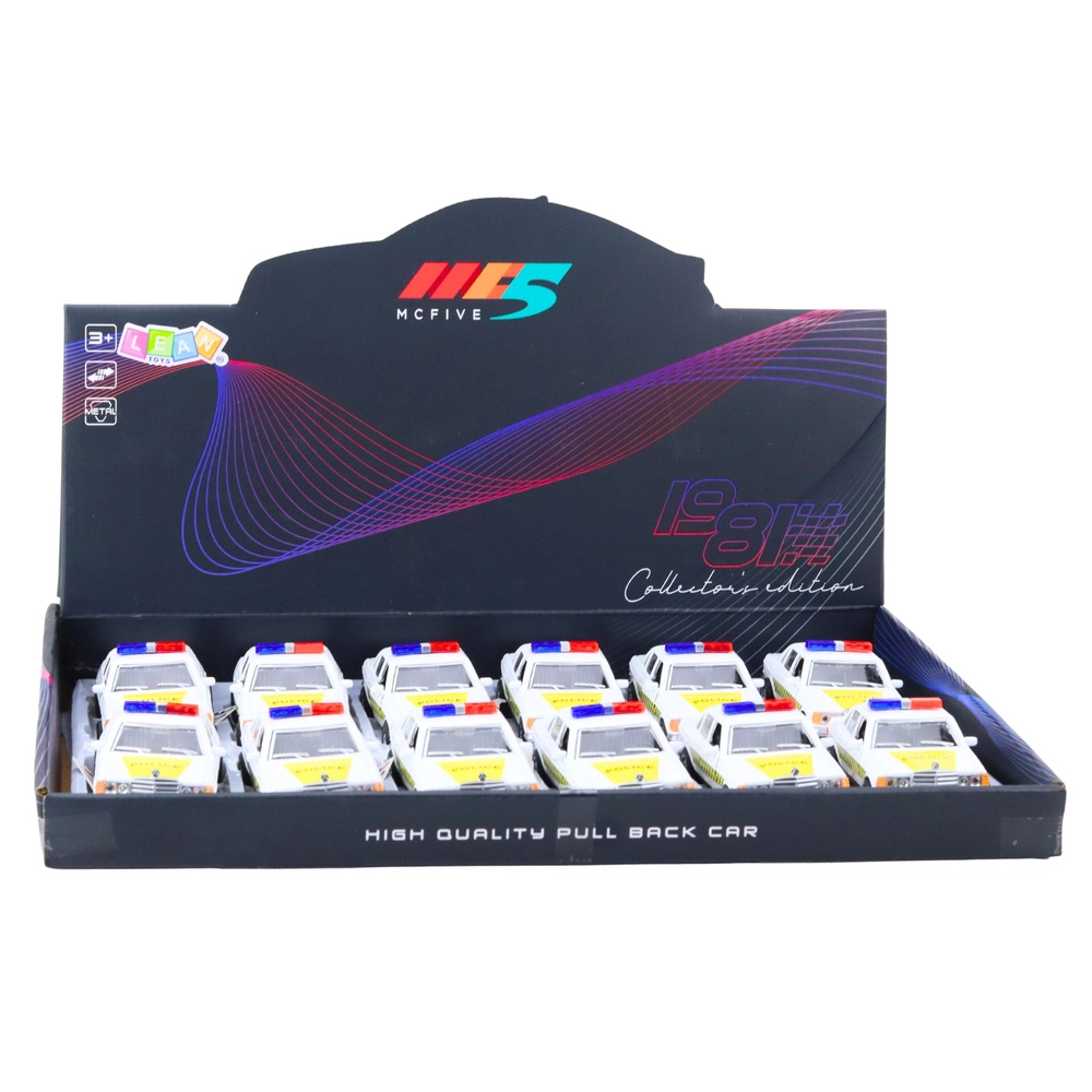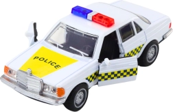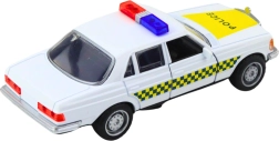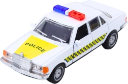 Wystarczy naciągnąć autko do tyłu, a mechanizm pull-back wystrzeli je do przodu, co gwarantuje dynamiczną i wielokrotnie powtarzalną zabawę. Autentyczna biała policyjna grafika z żółtymi akcentami oraz belką świetlną na dachu podkreśla realistyczny wygląd.