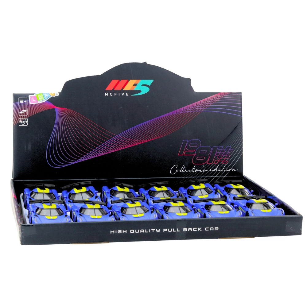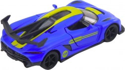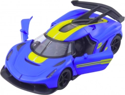 Stylowy metalowy sportowy samochodzik w skali 1:32 ucieszy małych kierowców i kolekcjonerów. Oferuje wytrzymałą metalową karoserię, otwierane drzwi dla bardziej realistycznej zabawy oraz napęd pull-back zapewniający żwawną jazdę. Kompaktowe wymiary i nowoczesny sportowy design w niebieskim kolorze z żółtymi akcentami czynią z niego świetny wybór do codziennej zabawy i na półkę.