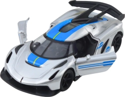 Model w skali 1:32 idealnie sprawdzi się do codziennej zabawy i jako uzupełnienie kolekcji. Srebrny kolor z niebieskimi i czarnymi akcentami oraz aerodynamiczne linie podkreślają wyścigowy charakter. Dzięki kompaktowym wymiarom łatwo zabrać go do przedszkola, na wycieczkę czy w odwiedziny.
