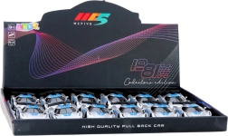 Odkryj kompaktowy samochodzik wyścigowy, który wyróżnia się trwałą metalową karoserią i nowoczesnym sportowym wyglądem. Wystarczy lekko naciągnąć do tyłu, a dzięki napędowi pull-back pomknie do przodu. Otwierane drzwi dodają autentyczności i zachęcają do obejrzenia dopracowanego wnętrza.
