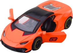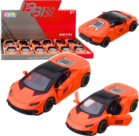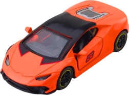 Stylowy metalowy sportowy samochodzik w skali 1:43 ucieszy małych kierowców i kolekcjonerów. Ma metalową karoserię, otwierane drzwi oraz napęd typu pull-back zapewniający szybką i świetną zabawę. Kompaktowe wymiary, aerodynamiczny design i wyrazisty pomarańczowy kolor z czarnymi detalami sprawiają, że to zarówno świetna zabawka, jak i dekoracyjny model.