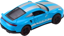 Model GTRS wykonano z wysokiej jakości metalu z plastikowymi dodatkami, dzięki czemu wytrzymuje codzienną zabawę, a jednocześnie świetnie prezentuje się na ekspozycji. Otwierane drzwi pobudzają wyobraźnię i pozwalają tworzyć własne wyścigowe historie. Napęd na naciąg pull back zapewnia szybki start i dynamiczną zabawę bez baterii.