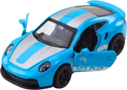 Kompaktowy metalowy model GTRS w skali 1:43 oferuje realistyczne detale, otwierane drzwi oraz zabawny napęd na naciąg (pull back). Wytrzymała konstrukcja, niebieskie wykończenie ze srebrnymi elementami i płynna jazda po równej powierzchni czynią go świetnym wyborem do dziecięcej zabawy i kolekcjonerskiej gabloty.
