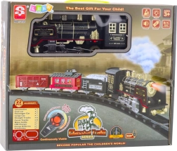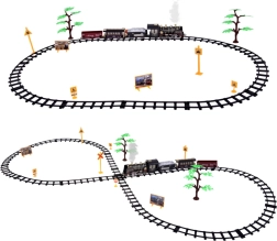 Kolejka CLASSICAL TRAIN łączy klasyczny wygląd parowej lokomotywy z nowoczesnymi funkcjami dla maksymalnie efektownych wrażeń. Po dolaniu wody lokomotywa wypuszcza delikatny „dym”, przednie światło świeci, a dźwięk jazdy wzmacnia wrażenie prawdziwej kolei. Płynny ruch po plastikowych torach i dopracowane detale wagonów pobudzają wyobraźnię i kolekcjonerską pasję.