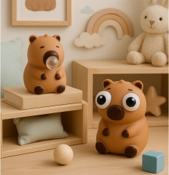 Uroczy antystresowy gniotek w kształcie kapibary dla dzieci i dorosłych. Po naciśnięciu pojawia się przezroczysta bańka lub wyskakują duże oczy, co daje natychmiastową ulgę w napięciu i zabawę. Wykonany z miękkiego, elastycznego materiału, który po ściśnięciu wraca do pierwotnego kształtu. Idealny do szkoły, biura i w podróż.