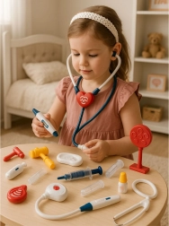 Stetoskop i inne elementy ze świetlnymi oraz dźwiękowymi efektami zapewniają dzieciom autentyczne wrażenia z badania i sprzyjają wciągającej zabawie.