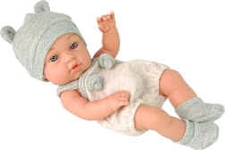 Urocze niemowlę o wysokości 18 cm zachwyca realistycznymi detalami i przyjemnym, miękkim materiałem. Dzięki ruchomym kończynom i głowie laleczkę można łatwo posadzać i układać. Jest ubrana w białe body z szarymi elementami, ma miękką czapeczkę z uszkami oraz śliniaczek z kokardką – idealne do zabawy w opiekę i rozwijania wyobraźni.