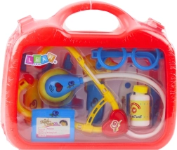 Zabawny zestaw lekarski w praktycznym kuferku ucieszy wszystkich małych doktorów. Zawiera bezpieczne plastikowe narzędzia do zabawy w badanie, takie jak stetoskop z efektami dźwiękowymi, strzykawka, termometr i inne akcesoria. Dzięki przenośnemu kuferkowi wszystko jest przejrzyście uporządkowane i gotowe w podróży. Wspiera empatię, kreatywność i motorykę małą, a także pomaga dzieciom oswoić się z otoczeniem gabinetu.
