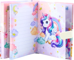 Pamiętnik z motywem jednorożca to świetny wybór dla dzieci, które chcą mieć swoje myśli w bezpiecznym miejscu. Dzięki zamkowi szyfrowemu z możliwością zmiany kodu dziecko ma swoją prywatność pod pełną kontrolą. Po otwarciu rozlega się radosna melodia, która uprzyjemnia każdą chwilę pisania.