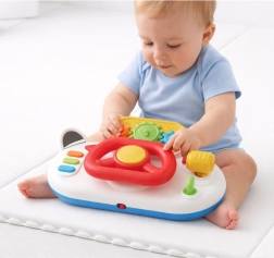 Ta kolorowa interaktywna tablica z kierownicą pozwala dzieciom bezpiecznie naśladować jazdę samochodem. Dzięki realistycznemu rozmieszczeniu elementów oraz natychmiastowej informacji zwrotnej w postaci świateł i dźwięków zabawa jest naturalnie wciągająca i rozwijająca. Dzieci mogą kręcić kierownicą, naciskać przyciski, przesuwać dźwignię i obserwować, co się stanie.