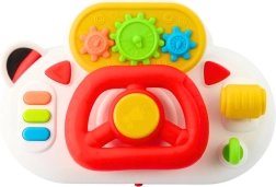 Interaktywna kierownica dla dzieci oferuje realistyczne wrażenia z jazdy i wspiera naukę poprzez zabawę. Zawiera obracaną kierownicę, efekty świetlne i dźwiękowe, przyciski, obracające się zębatki oraz dźwignię zmiany biegów, które rozwijają małą motorykę, koordynację ręka–oko oraz rozumienie przyczyny i skutku.