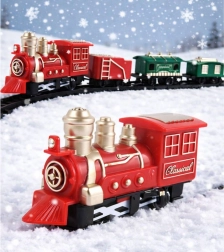 W opakowaniu znajdziesz lokomotywę, kilka wagonów, zatrzaskowe tory oraz świetlny znak – wszystko do natychmiastowej zabawy w domu.