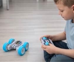 Zdalne sterowanie umożliwia jazdę do przodu/tyłu oraz w lewo/w prawo, a światła LED podkreślają show przy każdym kaskaderskim triku. Zabawa rozwija koordynację, spostrzegawczość i małą motorykę dzieci, a dzięki zintegrowanym akumulatorom auto jest gotowe do akcji po krótkim ładowaniu.