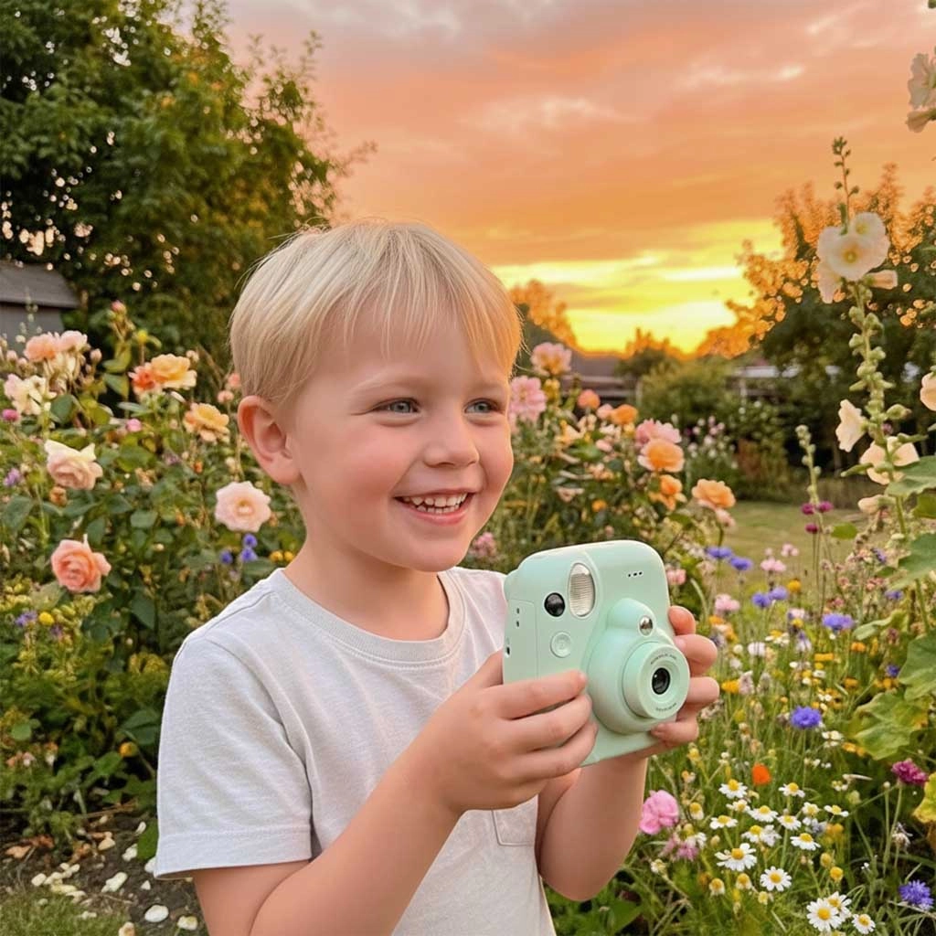 Ten kompaktowy, zielony aparat natychmiastowy dla dzieci łączy robienie zdjęć, nagrywanie wideo i szybki druk na papierze termicznym. Dzięki czytelnemu wyświetlaczowi IPS 3,0", prostej obsłudze przyciskami i wytrzymałemu wykonaniu z ABS i silikonu jest idealny dla małych fotografów od 3 lat. Kreatywność wspierają zabawne filtry, efekty typu fisheye oraz możliwość kolorowania wydruków dołączonymi mazakami.