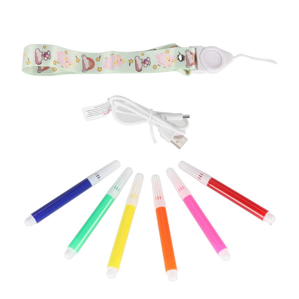 W opakowaniu znajdziesz odpinany pasek, przewód ładujący USB‑C, rolkę papieru termicznego oraz 6 kolorowych mini mazaków – wystarczy włączyć i zacząć tworzyć.